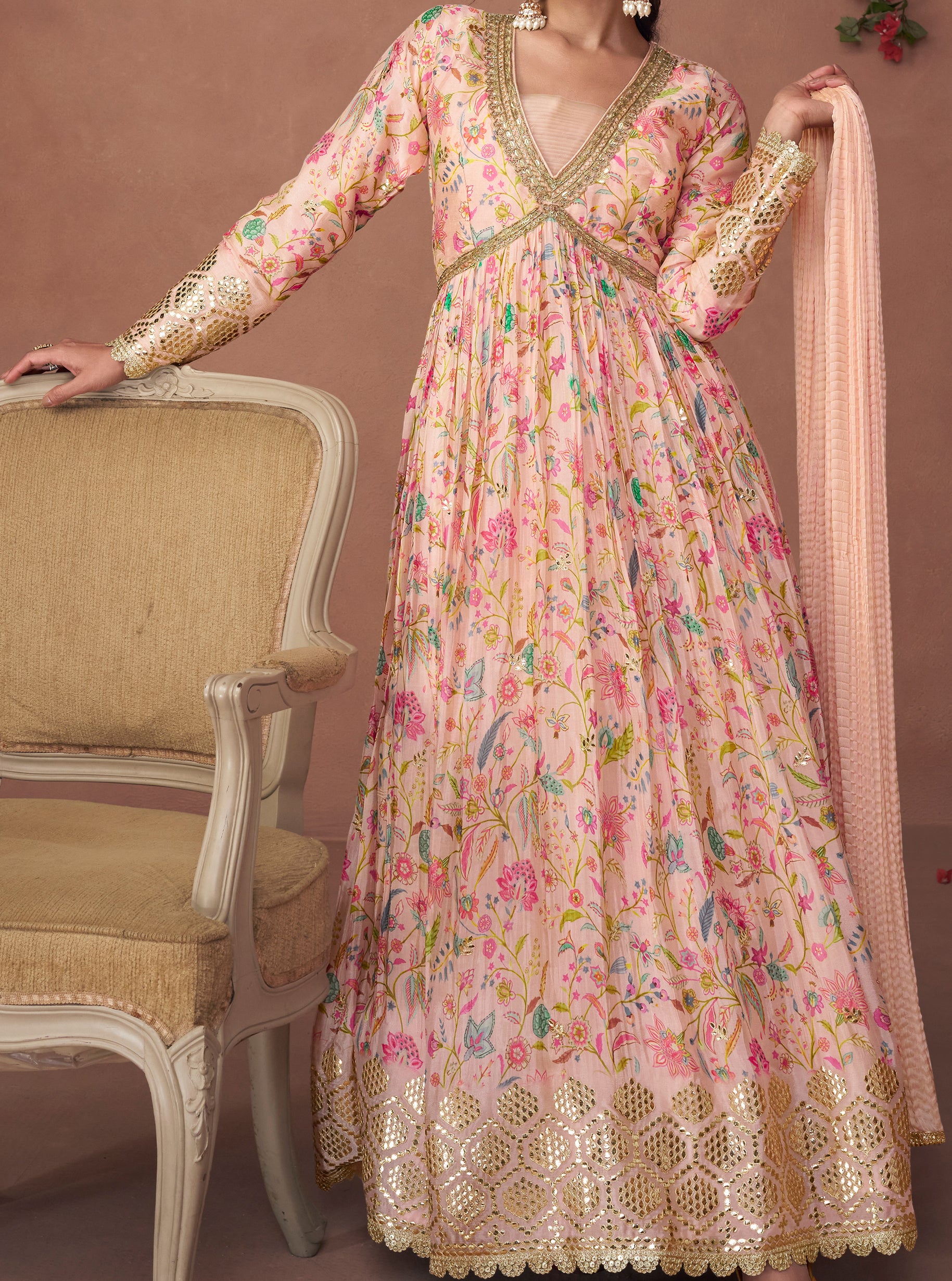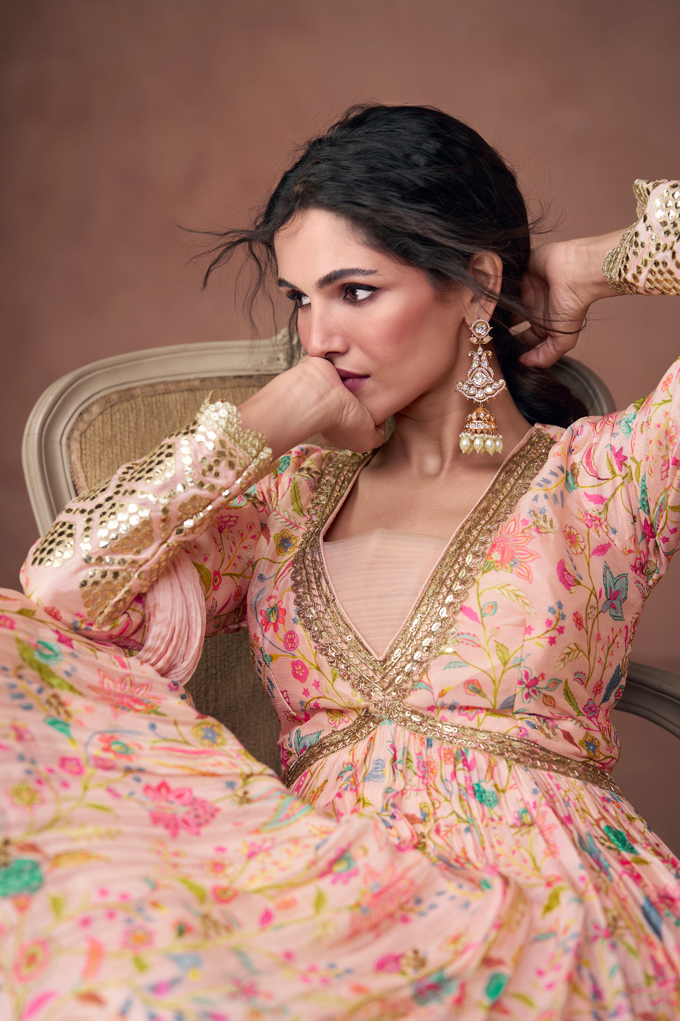 Designer Light Pink embroidered organza floral inspired anarkali dress | anarkali dress | Bollywood Dress