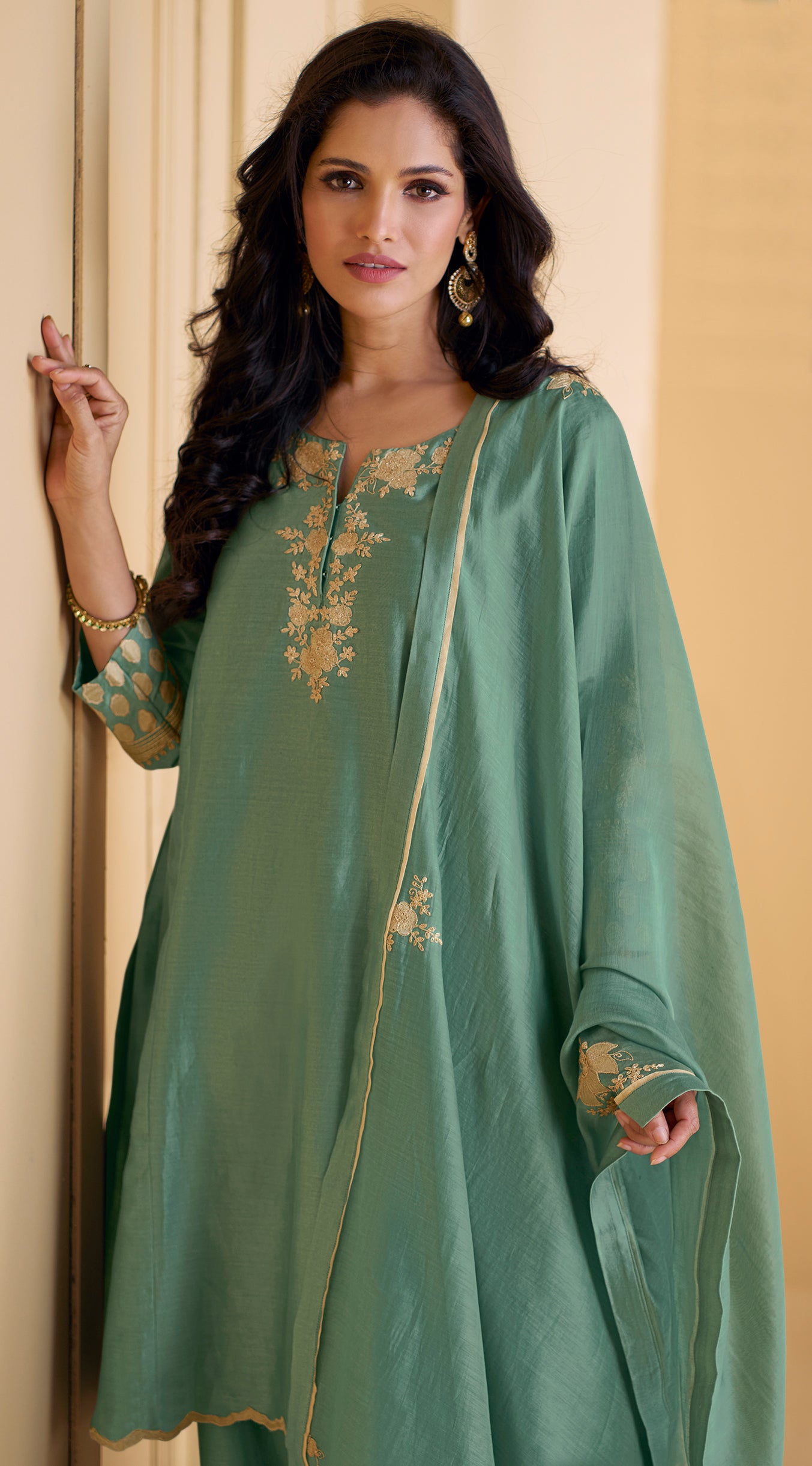 Designer Mint Green exclusive Sharara dress with detailed embroidery