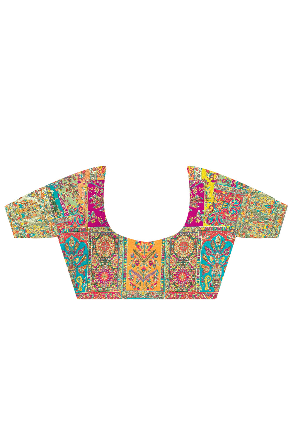 Exclusive contrasting green kashmiri pallu handloom weaving saree on kashmiri modal fabric