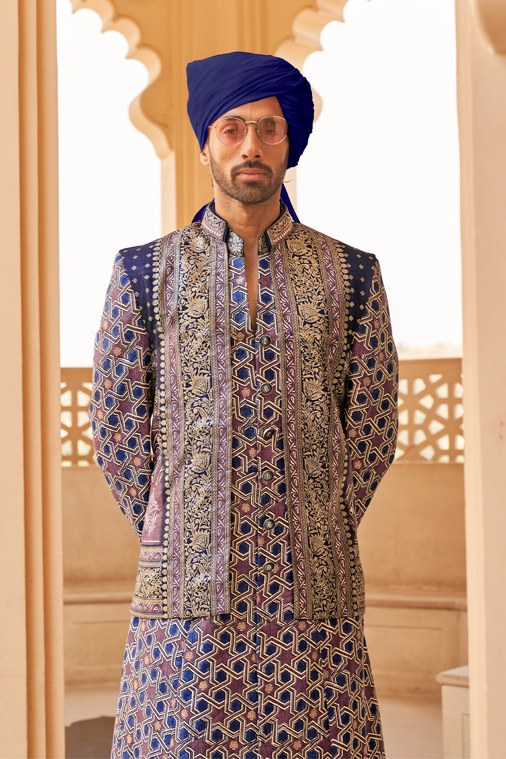 Exclusive latest Royal Blue designer mens indowestern sherwani kurta in pure pv silk and foil inspired with handwork