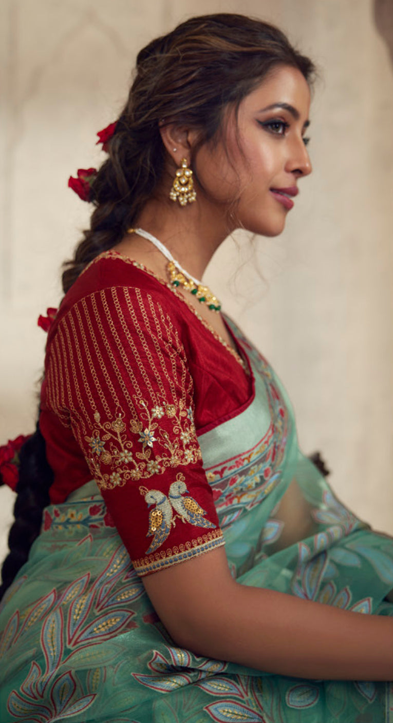 Saree with stitched blouse | saree blouse | Indian Saree | Organza saree | wedding saree | saree with blouse readymade | saree belt | Paithani saree | Saree with blouse | bandhani patola saree| ikkat saree | banarasi katan | floral saree | tissue saree | Blouse | jamewar saree | gadwal saree | casual saree
