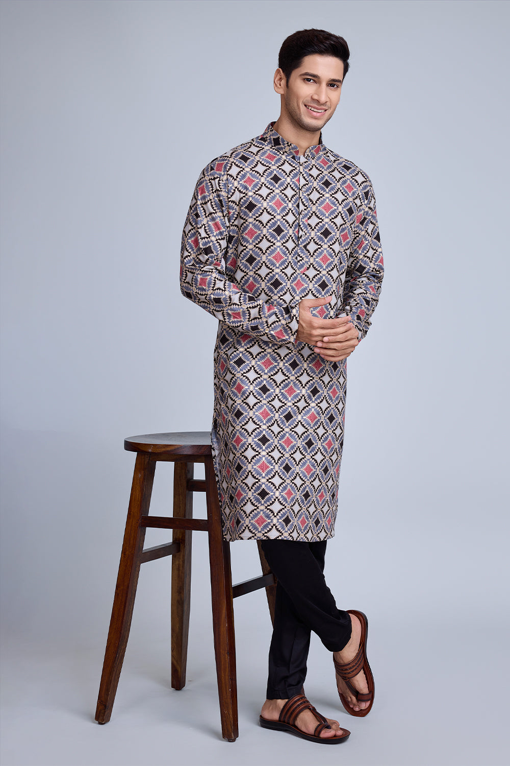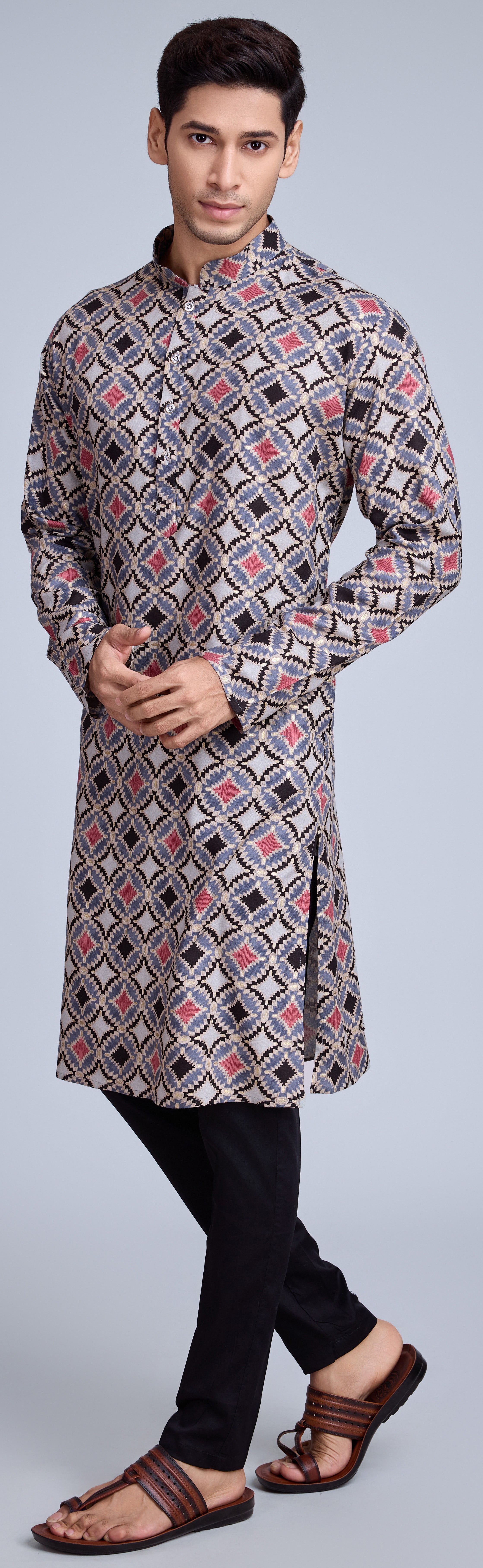 Gray Contrasting indian aspiring Printed rayon Mens kurta for wedding and other occasion comes with pajama