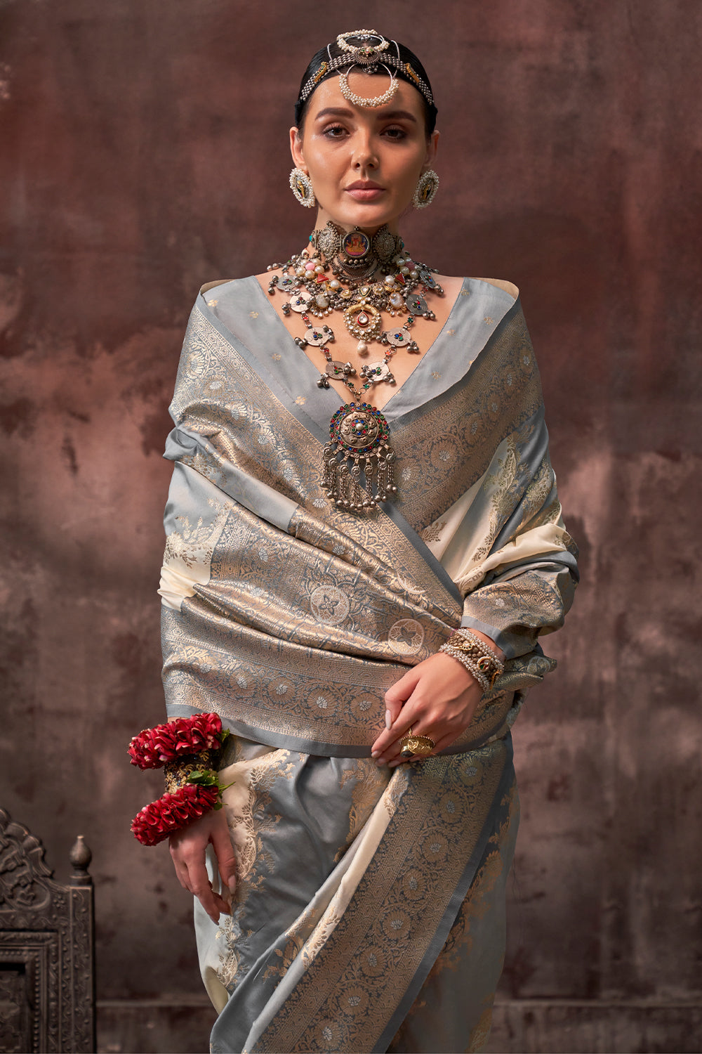 Gray shaded leheriya silk saree with handloom weaving saree | Shaded leheriya style Saree