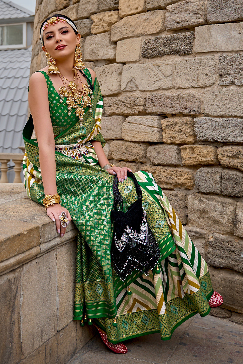 Green shaded leheriya silk saree with aqua finish weaving saree | Silk Saree | Shaded leheriya style Saree