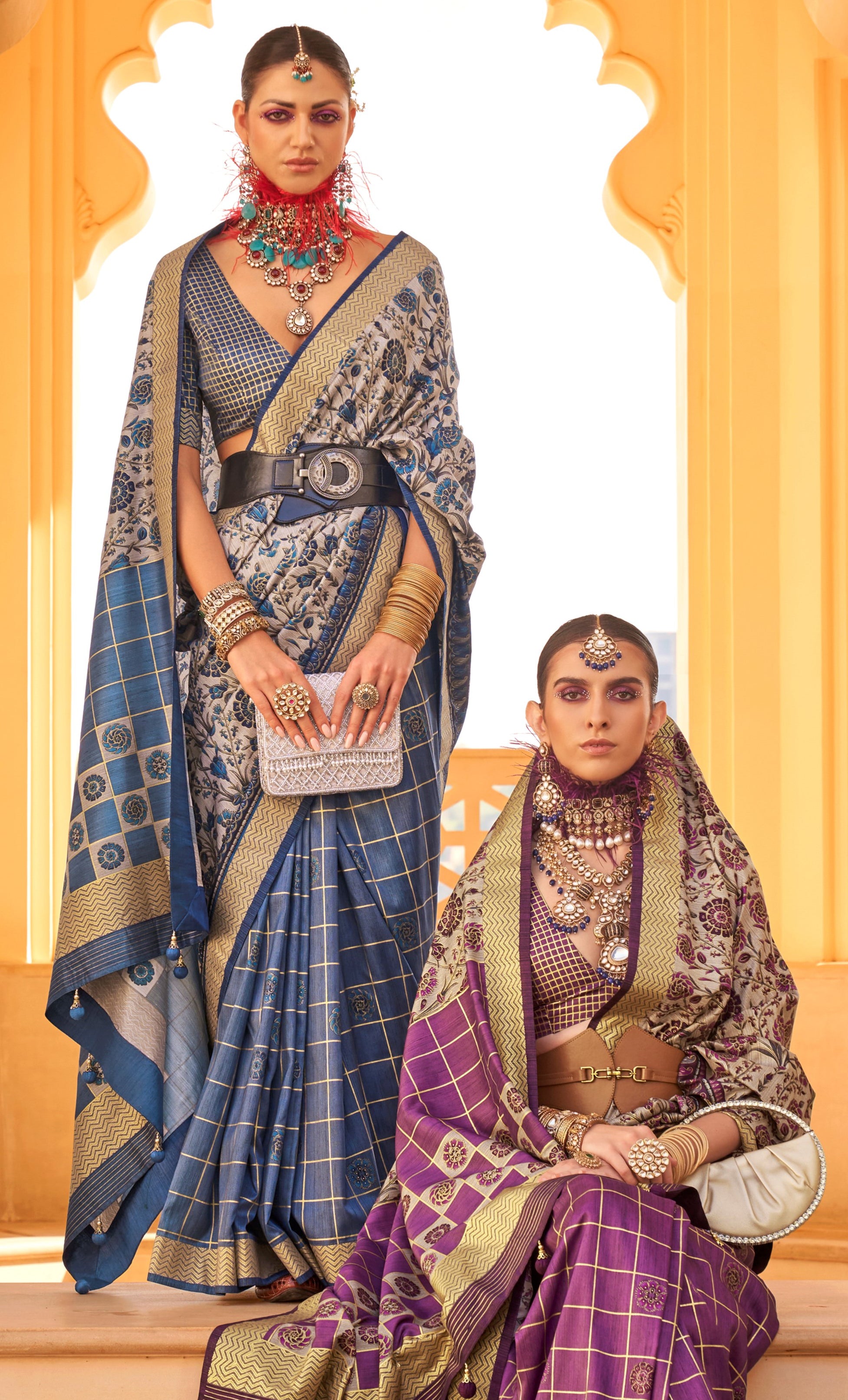 Indian culture inspired block print pure silk exclusive saree for all occasion with gold foil work finish