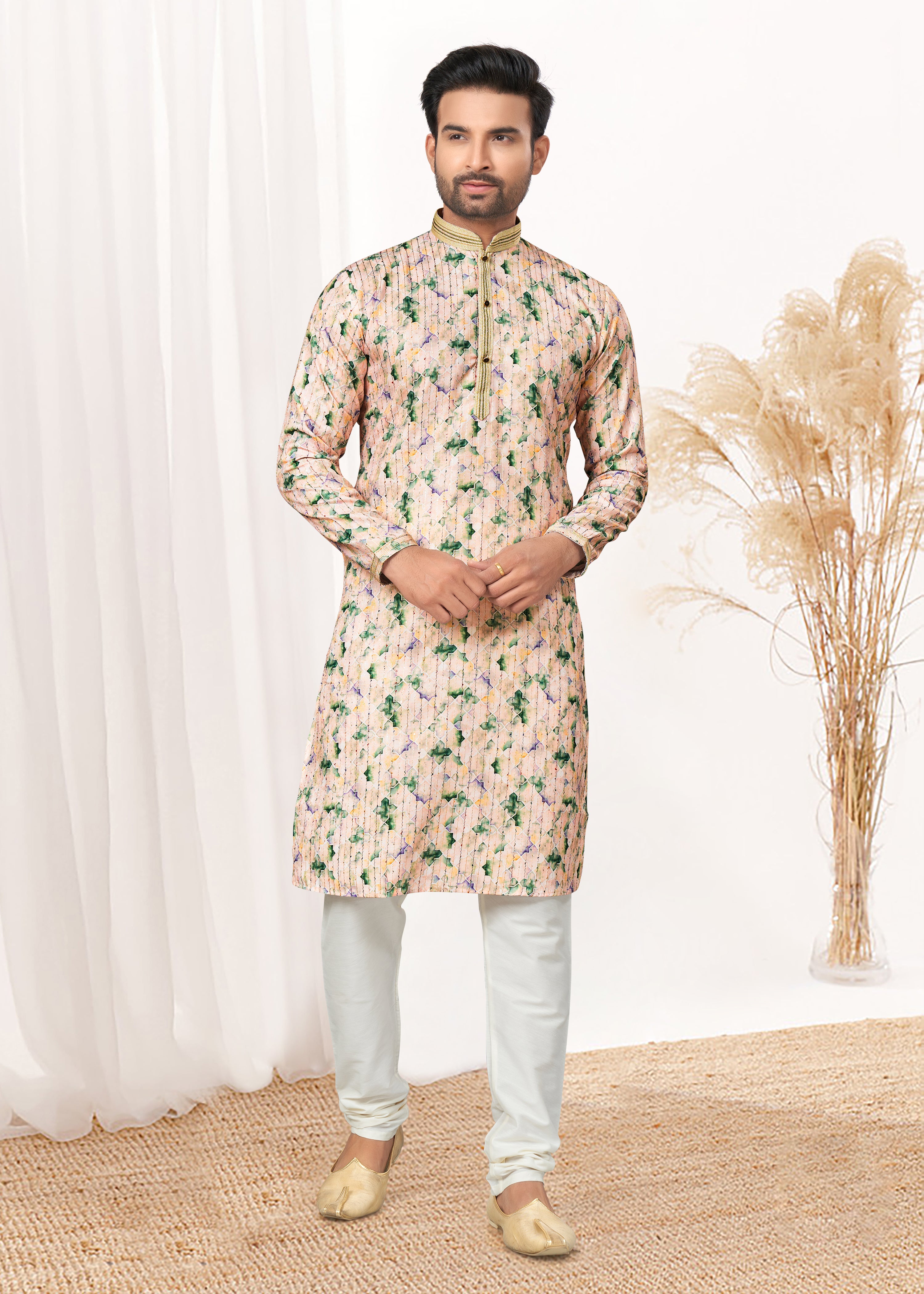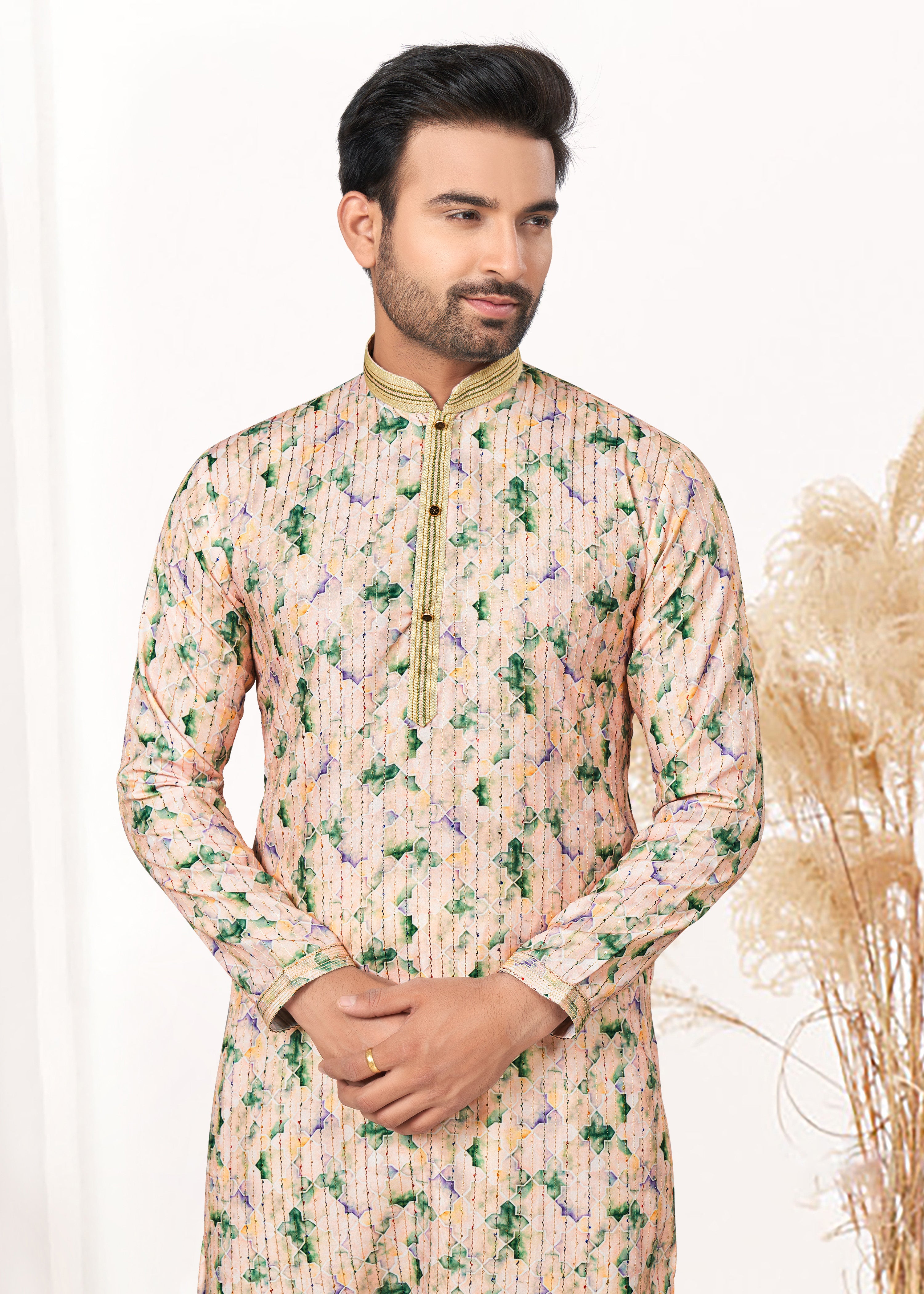 latest Contrast Digital print kurta on cotton with detailed pintex, thread, sequence work for wedding