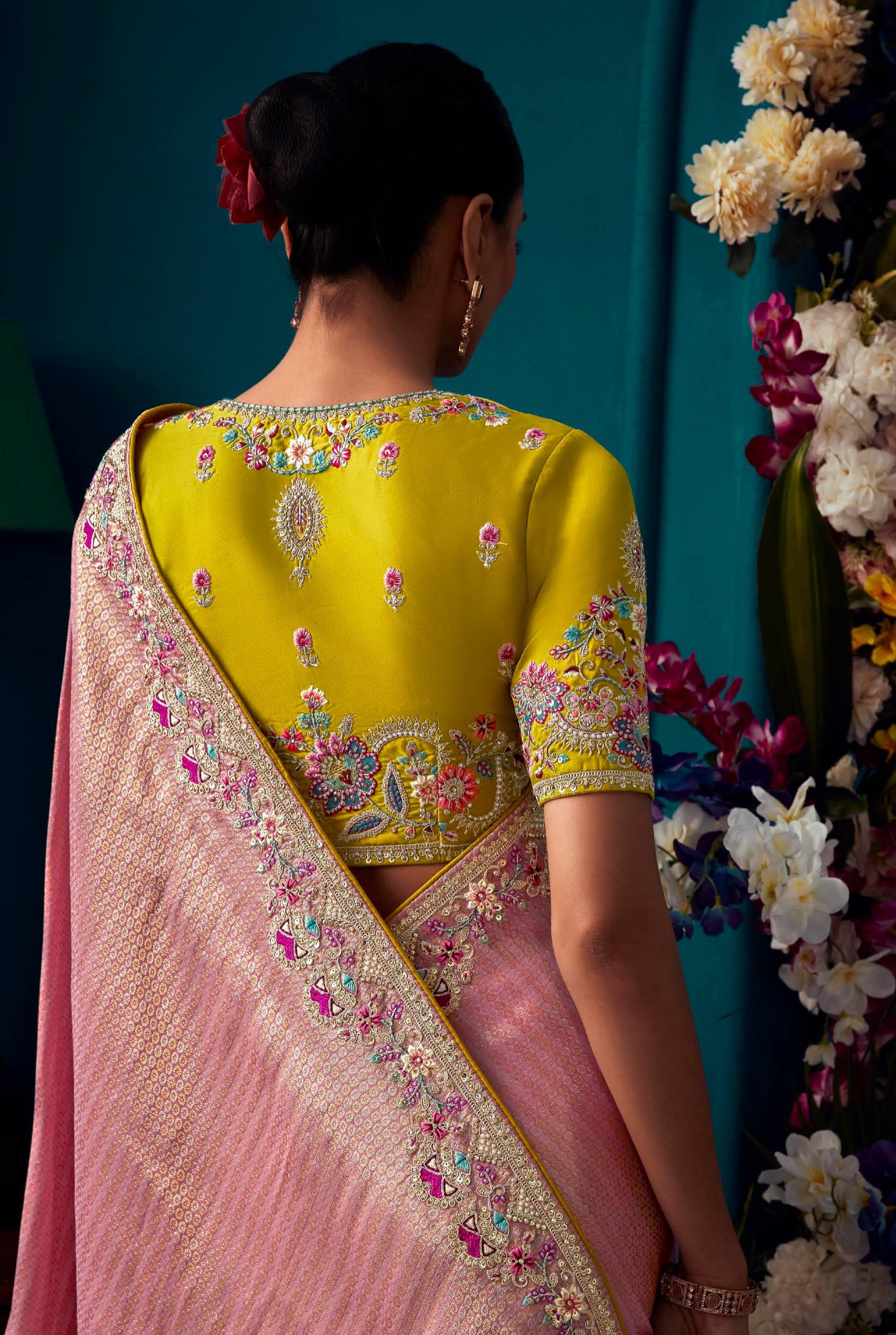 Saree with stitched blouse | saree blouse | Indian Saree | Organza saree | wedding saree | saree with blouse readymade | saree belt | Paithani saree | Saree with blouse | bandhani patola saree| ikkat saree | banarasi katan | floral saree | tissue saree | Blouse | jamewar saree | gadwal saree | casual saree