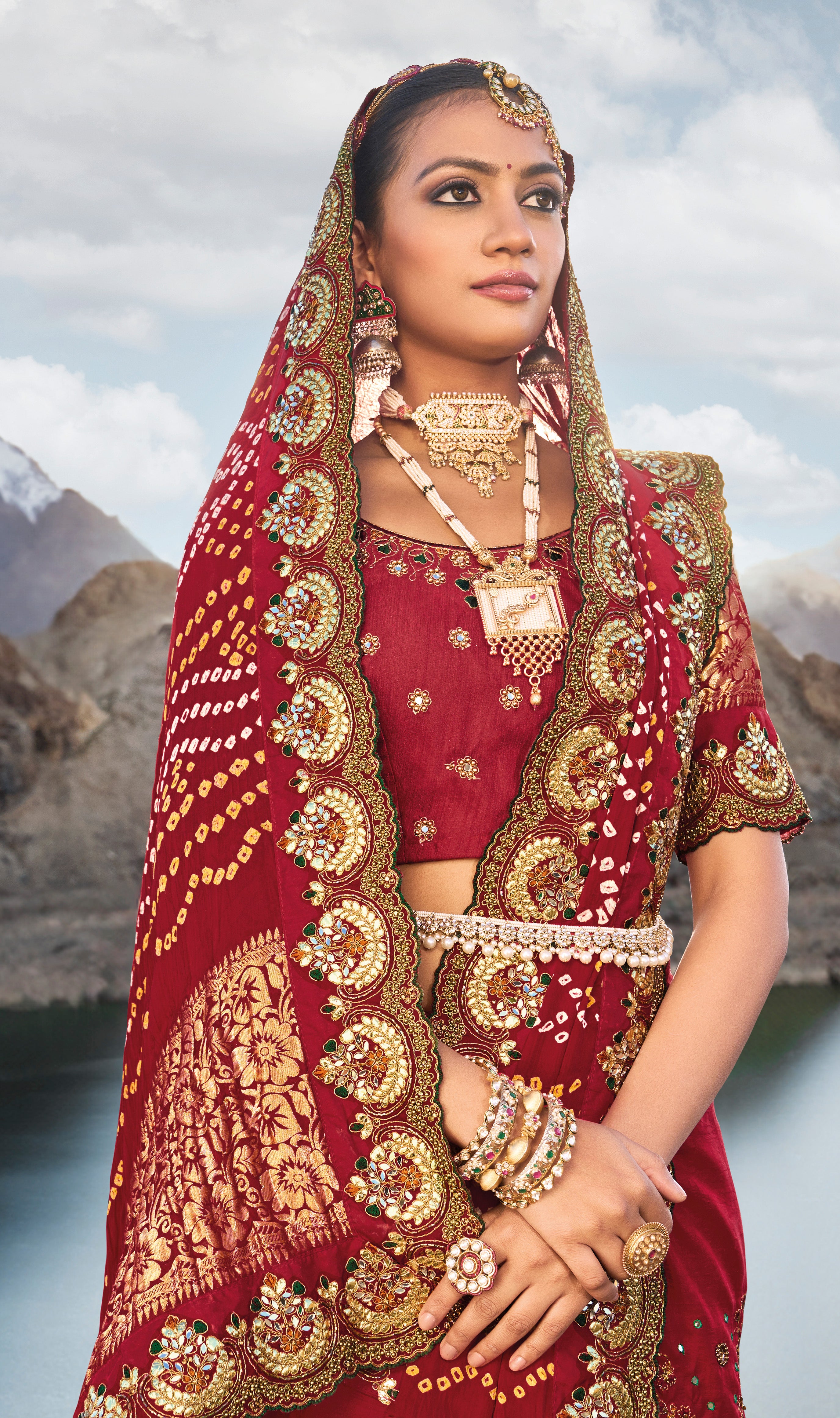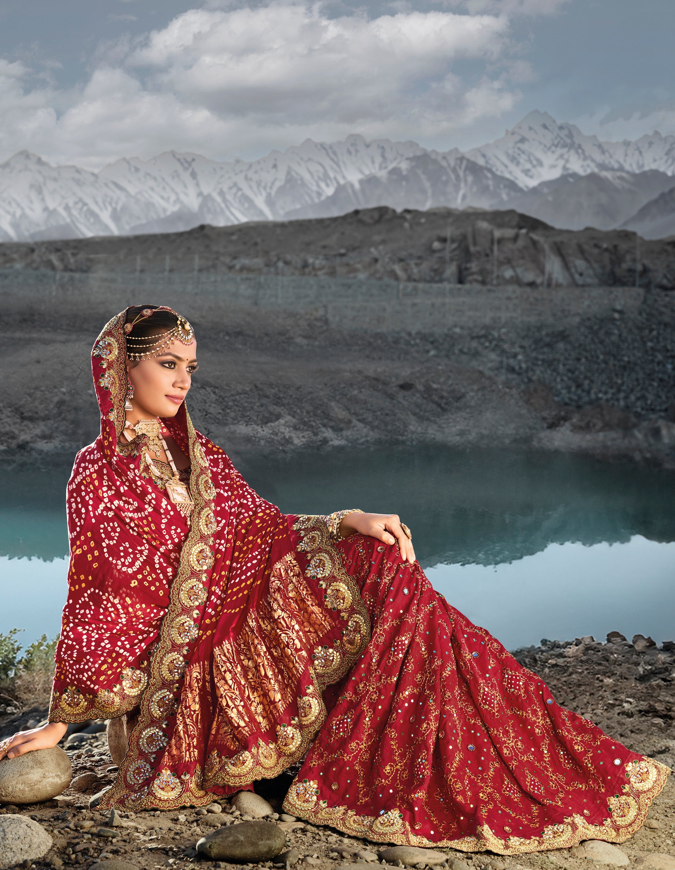 FABRIC : ROYAL BLUE PURE GAJJI BANDHEJ SATTN