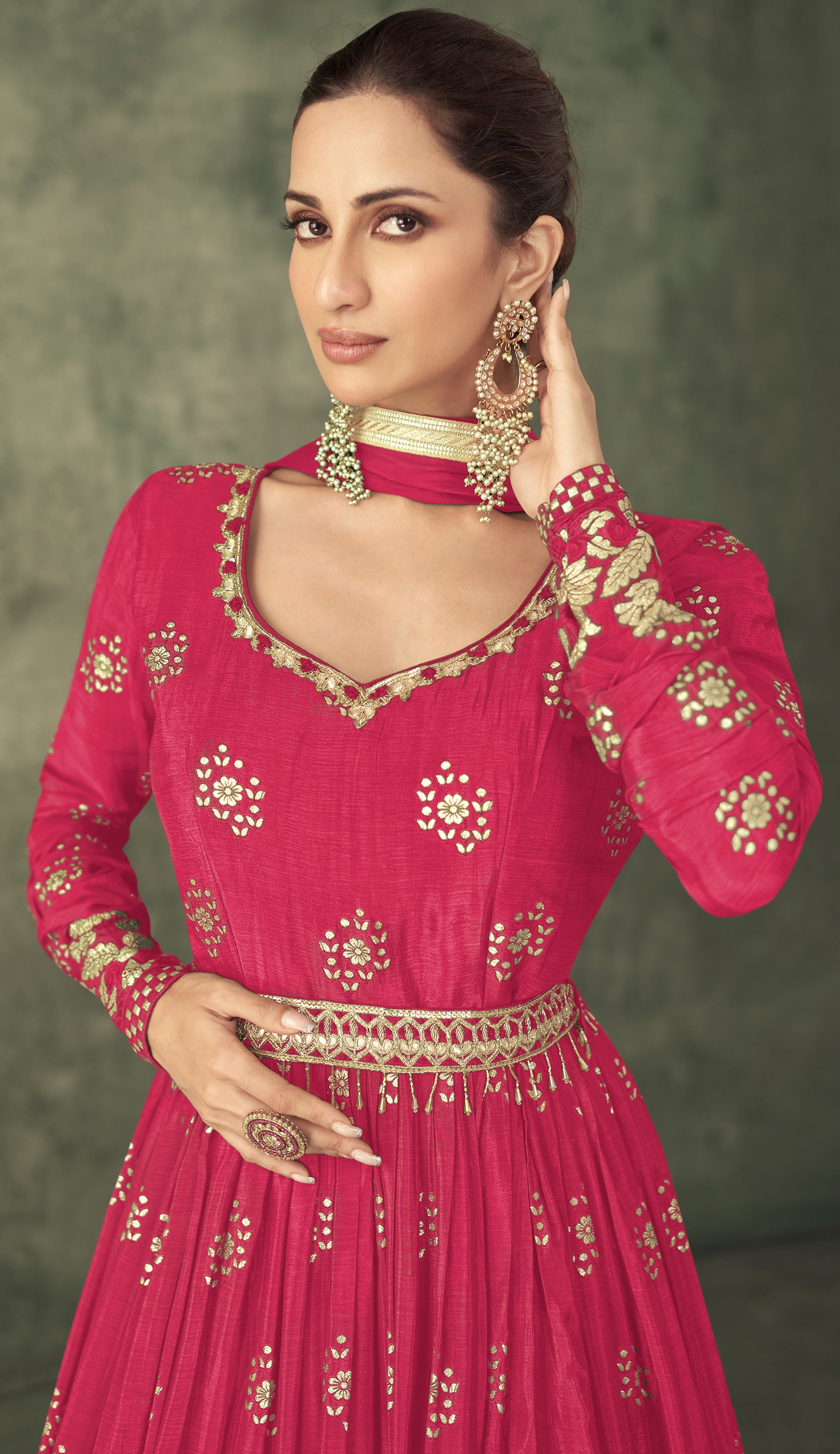 Pure Viscose designer pink dress with thread and detailed embroidery work indian aspiring design