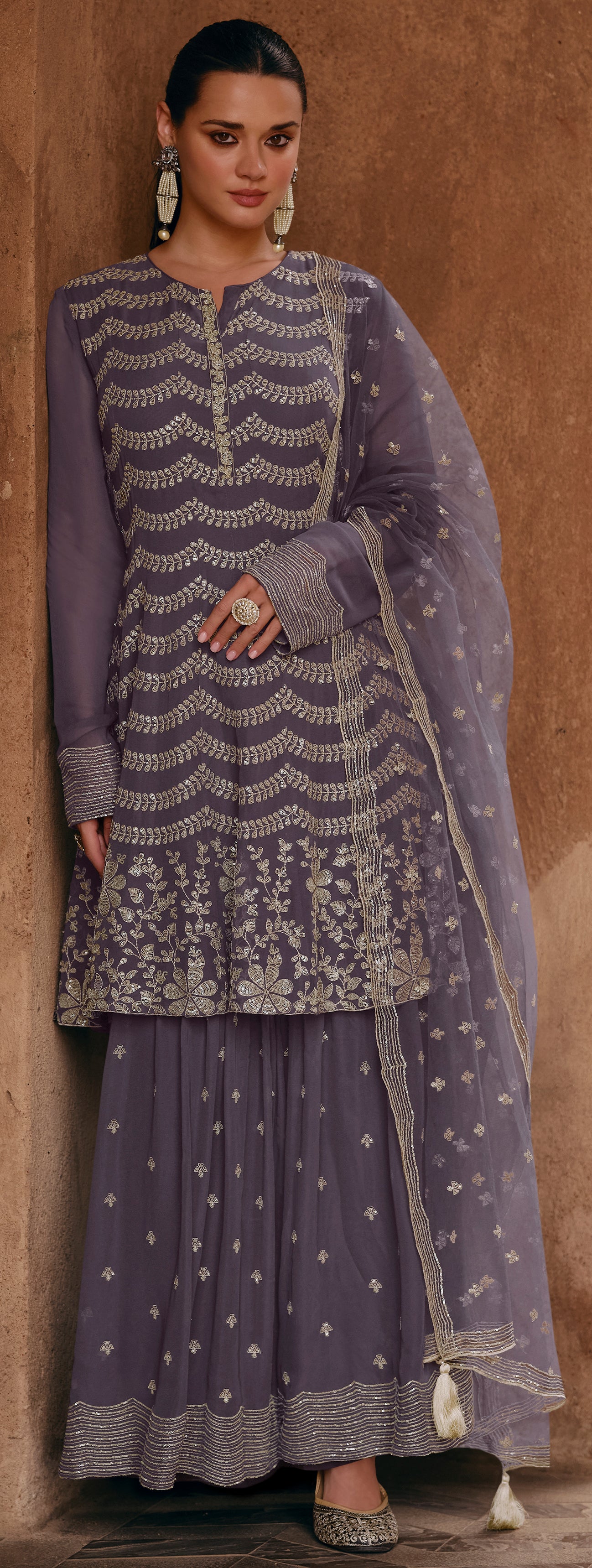 Unique Designer Pure Chinon Dress with detailed embroidery Sharara