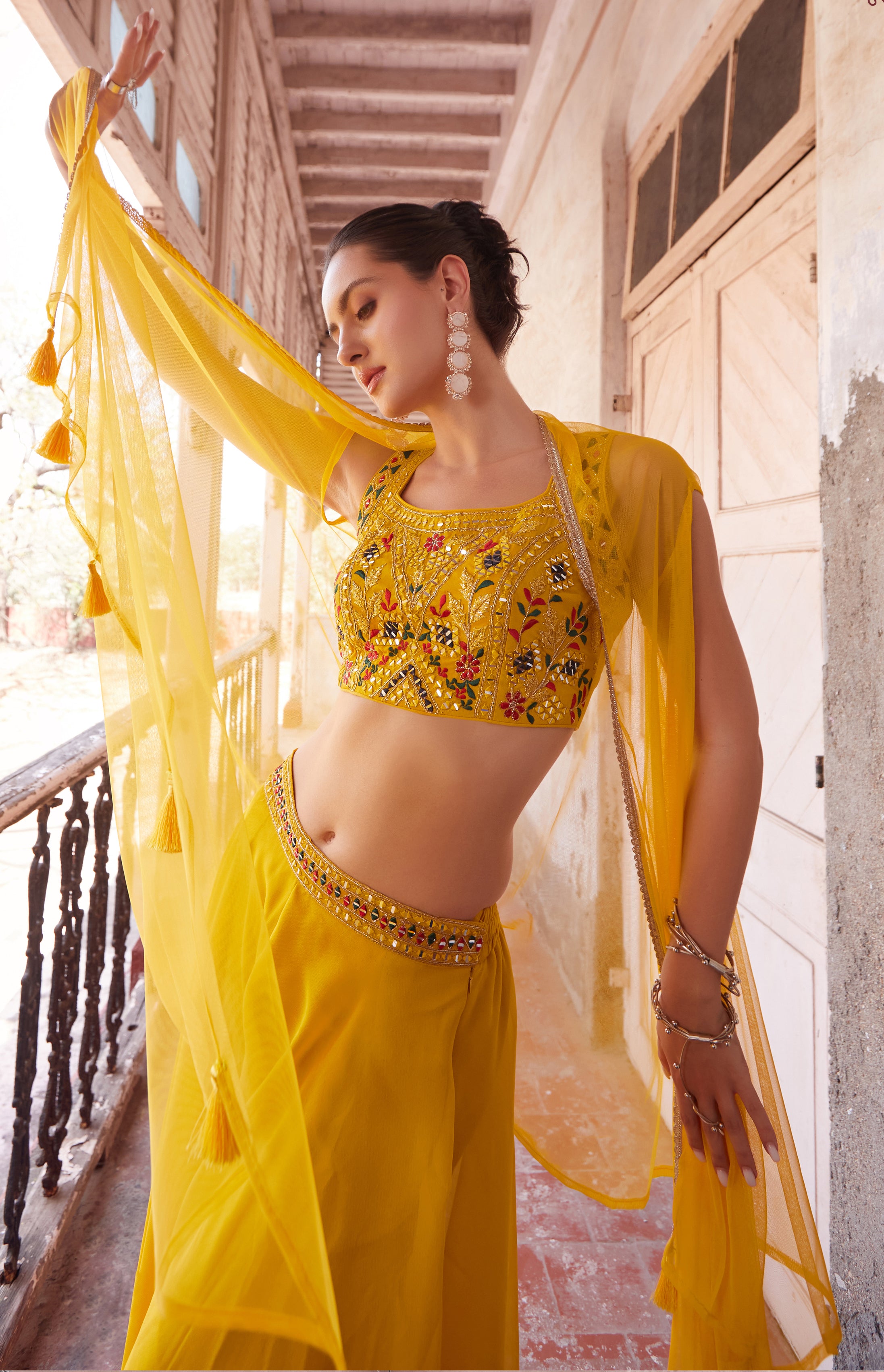 Sharara, Choli and Cape - Georgette
